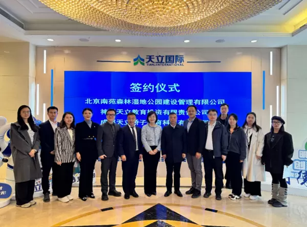 2025年3月14日,天立国际旗下天立教育集团与北京南苑森林湿地公园建设管理有限公司正式签署合作协议,双方将携手将北京南苑森林湿地公园共同打造成集自然教育、生态体验、文化传承于一体的综合性研学基地。