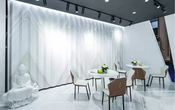 展会现场,在品牌战略发布环节,尚玥汉白玉品牌营销副总闫玮详细介绍了尚玥目前所取得的技术突破——通过纳米涂层抗污技术和超薄复合工艺,解决了大理石的固有痛点。在尚玥汉白玉的展位,纤薄透光的汉白玉,吸引了很多设计师和专业观众的目光。这便是技术赋予汉白玉的现代魅力。