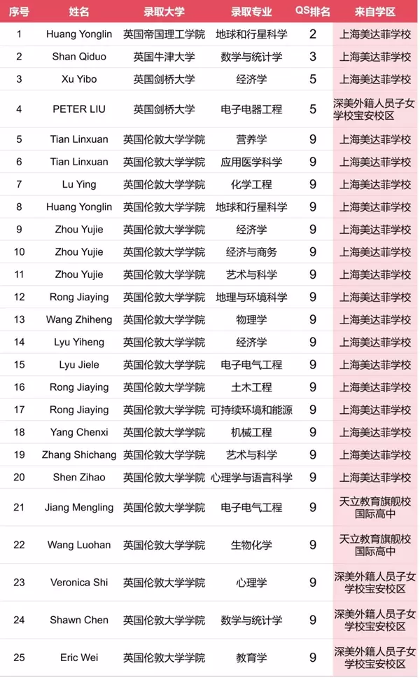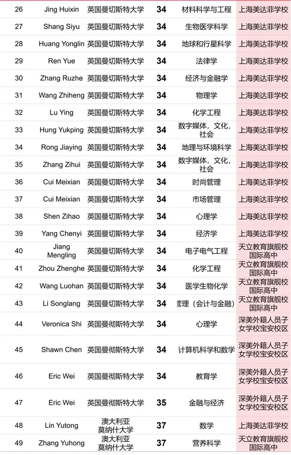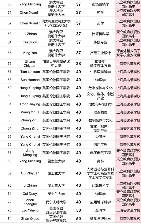 在QS前50名校录取中,3大国际学区共斩获QS前50大学Offer104枚。