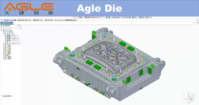 大捷智能研发团队面向以模具为代表的复杂装备设计,突破专业知识提取与大数据库搭建、参数化标准件库建立、特征识别与参数提取、行业AI模型构建、AI几何建模算法等核心技术,面向工艺装备产业,研发出基于数据与知识驱动的新一代专业智能化设计系统,解决了传统设计依赖经验和CAD软件操作效率低的难题。