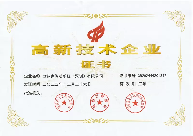 高新技术企业认证是国家对企业在技术创新、知识产权、市场转化等方面综合实力的最高认可之一。该认定对企业核心自主知识产权、科技成果转化能力、研发组织管理水平以及企业成长性等指标有着严格的审核标准。力纳克(中国)连续多年获此殊荣,充分彰显了其在技术创新、产品研发、市场应用等方面的综合实力。