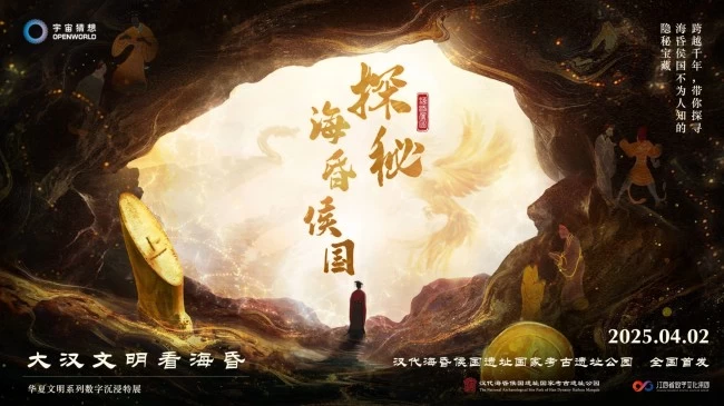 2025年4月2日上午,由宇宙猜想、南昌汉代海昏侯国遗址博物馆、江西省数字文化集团联合出品的《探秘海昏侯国》数字沉浸特展在南昌汉代海昏侯国遗址博物馆报告厅隆重启幕。展览以数字技术为纽带,通过1:1高精度场景还原、互动式文物探索及多视角自由漫游等创新形式,带领观众穿越两千年的时空长河,沉浸式感受汉代文明的璀璨辉煌。