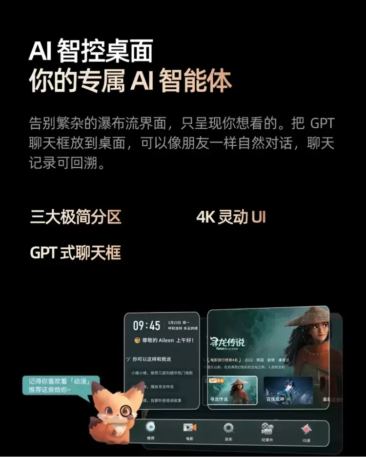 值得一提的是,创维A6F Pro还搭载了行业领先的大屏AI解决方案——酷开AI超级智能体,彻底解决了广大用户电视难用、内容难找的痛点。在使用体验上,它能够按照用户喜好呈现内容,让界面更简洁,轻松开启自然对话;老人即便是使用方言,它也能“秒懂”回应,轻松完成找影片、点击画面等任务;还能一句口令就为孩子创作专属的亲子绘本和睡前故事,实现高质量陪伴。