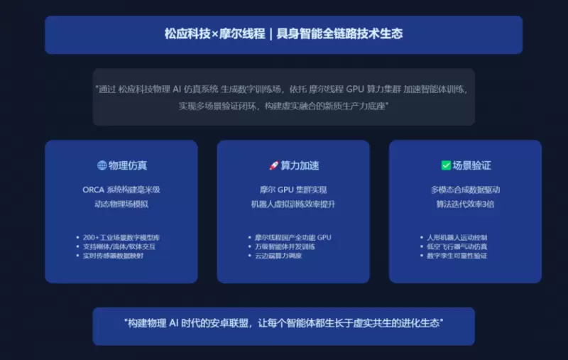 通过"物理 AI 仿真 - 机器人训练 - 场景验证"全链路技术生态,松应科技和摩尔线程将持续推动具身智能技术规模化落地。