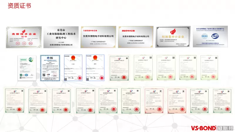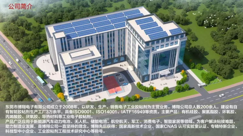 经过17年的稳步发展,博翔电子材料在国内动力电池胶粘剂行业树立了标杆地位,先后通过ISO9001、IATF16949、CNAS认证,获得了国家高新技术企业、广东省专精特新企业、东莞市工程技术研究中心等多项荣誉,并积累了深厚的技术底蕴。