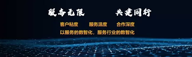 最后,让我们一起,共建同行,全面提升“客户粘度”、 “服务温度”、“合作深度”,以服务的数智化、服务行业的数智化,共同创造服务的无限可能,将服务打造成为核心竞争力之一。