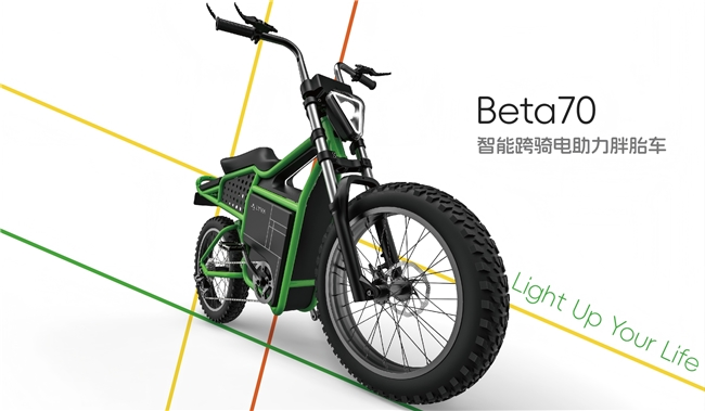 贝塔系列的设计理念来源于沙滩胖胎和跨骑的结合,设计主张个性表达,全地形探索。贝塔系列覆盖城市休闲骑行、户外探险、山地越野等全地形场景,致力于为用户提供无界探索轻出行的生活方式。