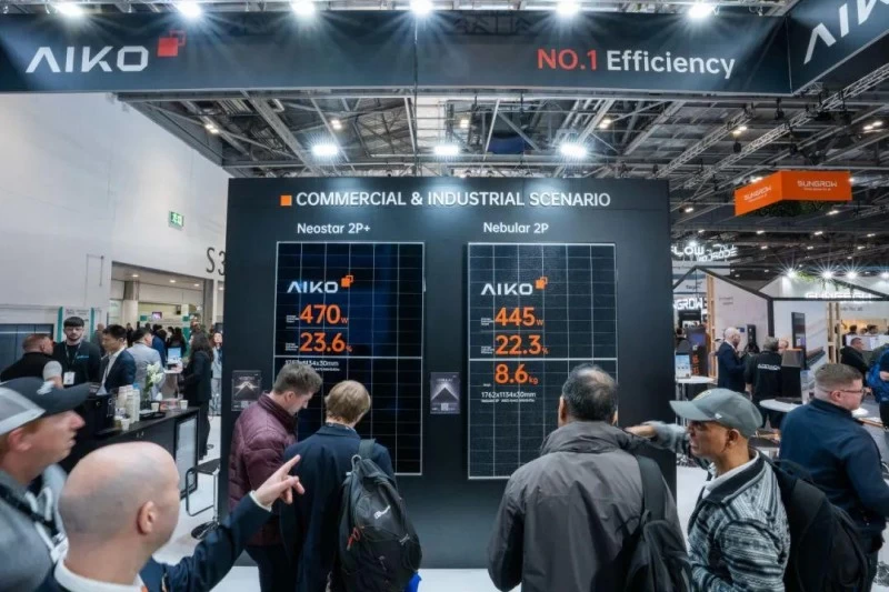 此次展会,爱旭展出了包括适配集中式场景的“恒星”系列、工商业场景的“慧星”系列、户用场景的“黑洞”系列以及“星云”系列轻质组件等全系产品。继正式启动全球量产交付后,第三代“满屏”组件产品再度亮相欧洲,收获现场广泛关注。