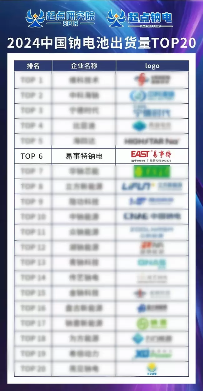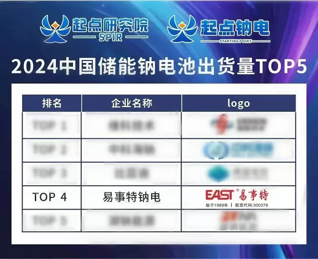 易事特荣膺“2024年中国储能钠电池出货量TOP5”“2024年中国钠电池出货量TOP20”两项殊荣