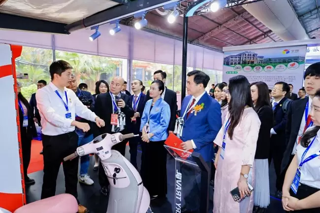 展会首日,越南工贸部副部长阮生日新、东博会秘书处秘书长韦朝晖、中国驻越南大使馆公使衔参赞邬国权、越南工贸部贸易促进局局长武伯富等一同参与此次参观活动。在展位现场,代表团现场观摩人民出行“智能两轮车+换电网络”协同解决方案的换电演示。仅需60秒就能安全、高效地完成车辆换电。阮生日新副部长特别指出人民出行的创新技术,为新能源交通发展提供了高效解决方案,并对人民出行所代表的中国硬科技给予了高度评价。