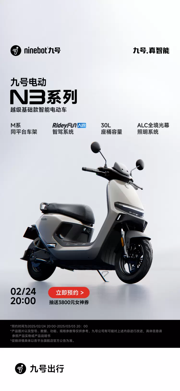 如果现在问你电动摩托车怎么选?相信大家都应该有答案了。对比2025年同价位热门车型,九号N3系列的优势相当突出,不仅拥有高端系列的底盘设计,还拥有更实用的机身配置,更丰富、完善的智能体验,以及安全感拉满的电控、照明技术,切实满足消费者的多重需求。加上首发3499元起的惊喜价格,九号N3系列确实称得上是3-4千元价位的真香之选,感兴趣的朋友不要错过了。