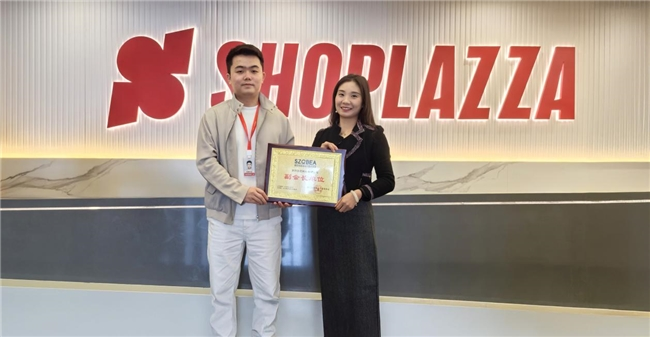 2025 年 3 月,深圳市跨境电子商务协会(以下简称“深跨协”)会员部秘书长王婷莎于店匠科技深圳总部为店匠科技(Shoplazza)授予深跨协“副会长单位”牌匾。深跨协作为国内跨境电商领域最具影响力的行业组织之一,拥有超过 3300 家会员企业,其评选标准严苛,店匠科技获此殊荣足见实力。