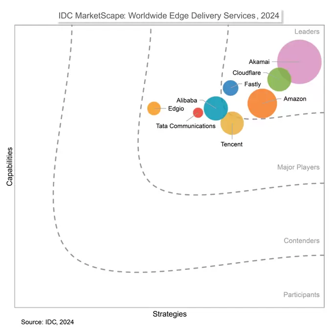 在此背景下,腾讯云 EdgeOne 结合研发实践与行业发展需求持续打磨产品,收获了诸多权威认证。截至目前,EdgeOne 是唯一满分通过信通院“边缘安全加速一体化综合服务能力评价模型标准”测评的厂商,也是唯一全项满足信通院“边缘安全加速平台标准认证”测评要求的厂商。此前,EdgeOne 还曾先后入选 Gartner DDoS 缓解方案市场指南、Gartner WAAP 市场指南报告代表厂商、Gartner Edge Distribution Platforms 市场指南报告代表厂商,位居 IDC 2024 MarketScape 全球边缘交付服务主要玩家类别。