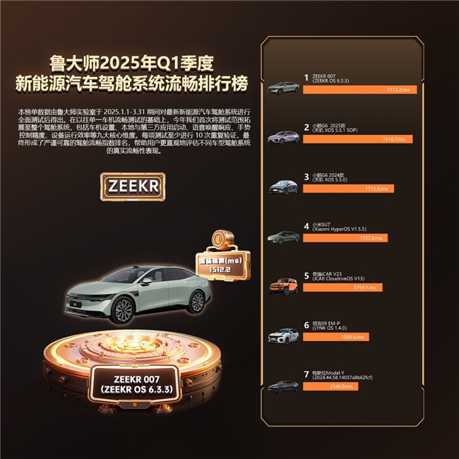 鲁大师2025年新能源汽车Q1季报:全新驾舱流畅榜单上线,极氪车机强势翻身