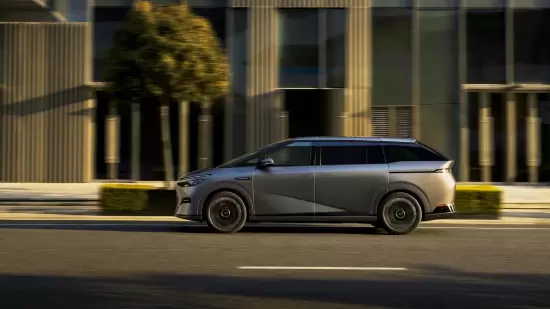 在设计上,2025款小鹏X9打破了传统MPV“方盒子”式的平庸设计,采用明日星舰设计语言,X- Robot家族式前脸、极具科技感的天际悬浮车顶和凌厉的车身线条展现出截然不同的气质,整车风阻系数低至0.227。全新20英寸星耀悬浮轮毂,配备了劳斯莱斯同源的动态定轴技术,更显高级。新增配的AI智驾小蓝灯则在提升出行安全的同时,增加了灵动氛围。