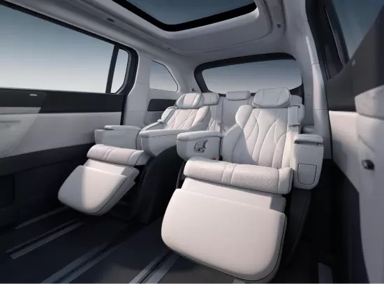 配置方面,小鹏X9同样不乏亮点。同级最大的21.4英寸生态娱乐屏,不仅支持莱茵防蓝光护眼技术,还具备0~75°无极悬停功能,为乘客提供了极致的视听体验。此外,新增的220V车内电源、无麦K歌系统、10.8L超大容积冷热一体电动冰箱以及全球唯一环绕式静感柔风中央空调等配置,进一步提升了车辆的实用性与便利性。值得一提的是,小鹏X9还全球首创了第三排座椅一键电动收纳功能,使得车内空间利用更加灵活高效。