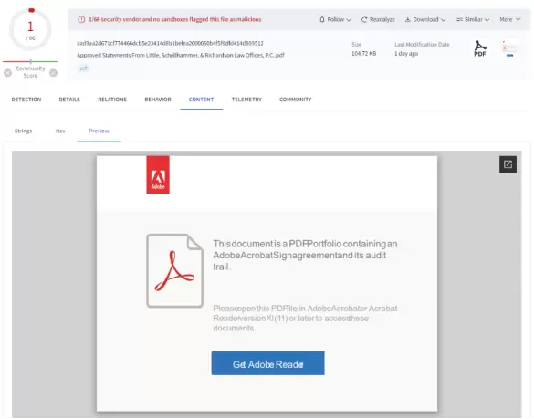 Check Point近期分享了一些攻击实例,其中 PDF 包含一个指向恶意网站或网络钓鱼页面的链接。虽然这种技术的技术含量相对较低,但它的简单性使自动系统更难发现。攻击者的目的是让受害者点击链接,从而启动攻击链。