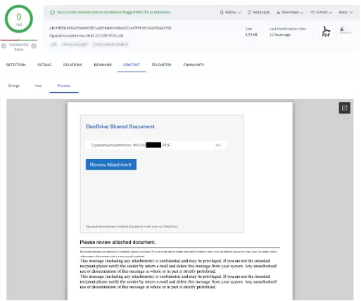 网络罪犯经常利用 PDF 文件进行网络钓鱼,因为这种格式被普遍认为安全级别较高。这些文件通常被视为真正的文档,是隐藏有害链接、代码或其他恶意内容的灵活容器。攻击者利用用户对 PDF 附件的熟悉程度,采用社会工程学策略,增加了欺骗收件人的机会。此外,PDF 文件还能逃过电子邮件安全系统的眼睛,因为这些系统更注重在其他类型的文件中发现威胁。