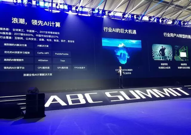 2017年4日,浪潮联合百度发布业界最高GPU密度的SR-AI整机柜。彼时的百度已经是中国互联网领域AI的一面旗帜。当年9月,双方发布ABC一体机。过去一年间,依托ABC一体机建立落地了面向平安城市,智慧交通等不同领域的公共安全解决方案。ABC一体机还帮助银行快速搭建基于IaaS层和PaaS层的AI云平台,以量化分析为切入点,开展智能投顾、投研、智能推荐,以及个性化推荐等AI应用研究和开发。在通信行业,帮助布局了智慧网络、智能客服、多媒体业务应用、智能分析等四大AI领域,全面开展AI算法及应用研究。