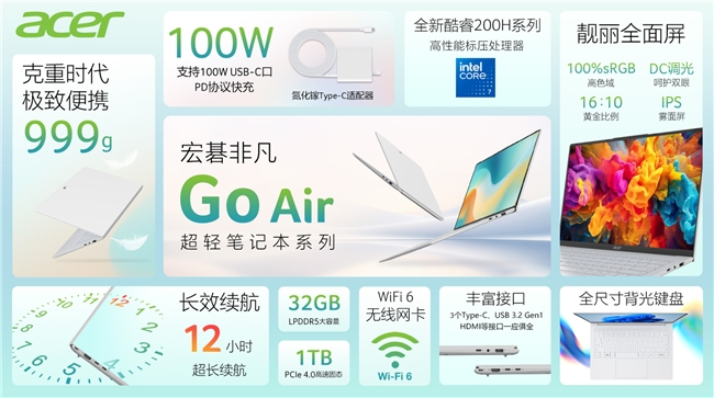 - 999克定义2025超轻本!宏碁非凡Go Air领衔迈入克重时代