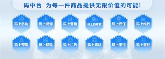 公司通过核心产品“码中台”,为企业提供一物一码产品全生命周期数字化管理服务,解决“品牌防伪、渠道防窜货、智能生产、精准营销、全流程溯源”等痛点,助力企业数智化升级,赋能未来工厂开启智造新时代。