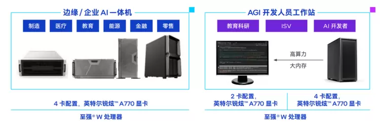 例如适应普通办公环境的塔式工作站、小型液冷一体机,支持包含英特尔锐炫™ 显卡在内的2-4张GPU卡。