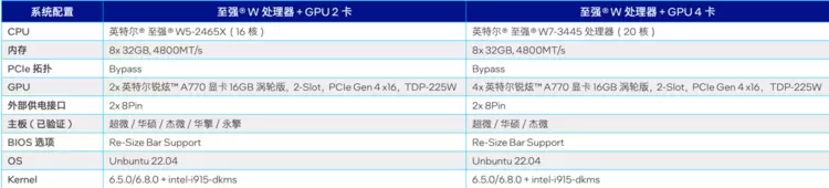即便对于不同规模场景,英特尔也能做到适配——从供AGI开发人员使用的工作站(2卡)到装载4卡或8卡的大尺寸一体机,能满足多样化且差异化的需求。