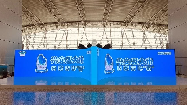 38㎡超清LED阵列,四屏联动主屏+辅屏+两侧双翼屏,霸屏机场T2国内到达出口C位。