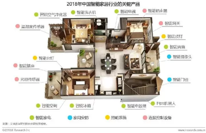 与智能手机市场的单一品类不同,智能家居的品类要多得多,光是目前已经出现的,就有智能家电、家用安防、照明系统、连接控制设备等四大类,拥有包括智能电视、智能空调、智能冰箱、扫地机器人、智能台灯、智能音箱、智能摄像头等在内的十几种关键产品。