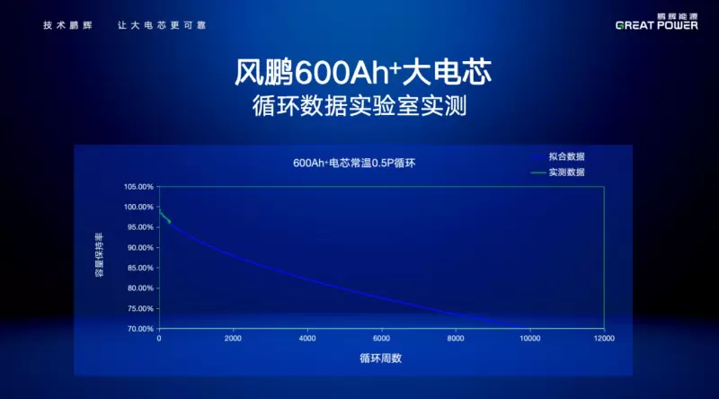 对于风鹏600Ah+大电芯,鹏辉能源坚持迭代其关键性能,从循环和能效双维度出发,持续跃升客户价值。