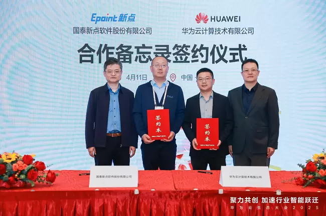 4月11日,在华为云生态大会2025期间,国泰新点软件股份有限公司(以下简称“新点软件”)和华为云计算技术有限公司(以下简称“华为云”)于安徽省芜湖市举行合作备忘录签约仪式,双方将围绕云计算、AI技术与政务领域应用场景的耦合展开深度合作,共同推动基于DeepSeek等前沿技术的行业解决方案落地,加速产业智能化升级。