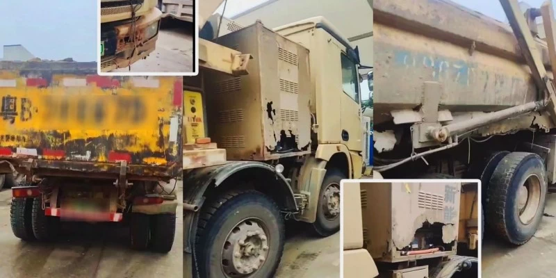 ▲经过多年高负荷运营,深圳第一批老旧电动渣土车出现了严重破损,甚至电池箱也有明显缺裂。