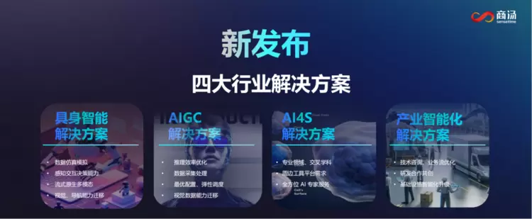 此次,商汤大装置面向具身智能、AIGC、AI4S以及传统企业智能化转型推出四大行业解决方案,针对不同行业客户提供从场景定义到业务落地的全链路赋能,真正解决智能化落地最后一公里难题。