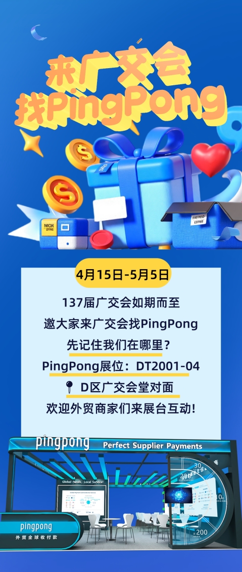 这场融汇商贸智慧与科技创新的年度盛会,正见证着中国与世界深度连接的崭新篇章。PingPong期待与全球合作伙伴共赴这场春天之约,在珠江潮涌中奏响跨境贸易的更强音。