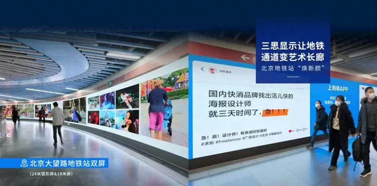 从北京大望路的双屏互动奇观,到王府井、国贸等标志性站点的文化展廊,三思正用光影重塑城市地下空间,让每一程地铁之旅成为一场视觉盛宴。
