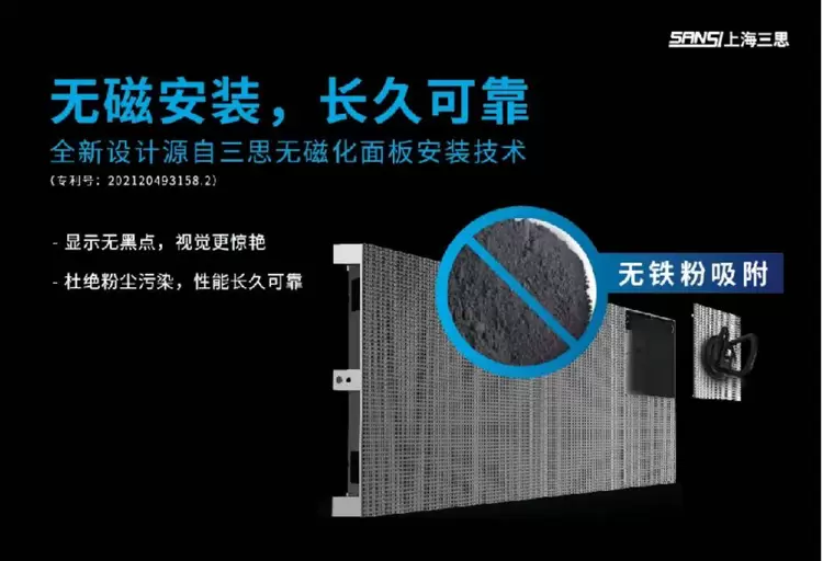 值得一提的是,该产品采用了三思独特专利的自研无磁化面板固定设计(专利号:202120493158.2 ),专为地铁高粉尘环境设计,有效杜绝因轨道摩擦所导致的空气中的铁粉吸附污染及掉灯难题,显著提升产品使用寿命,显示持久稳定。