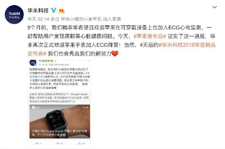 苹果Apple Watch 4自带心电图!华米科技称“我们去年就有了”