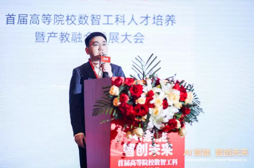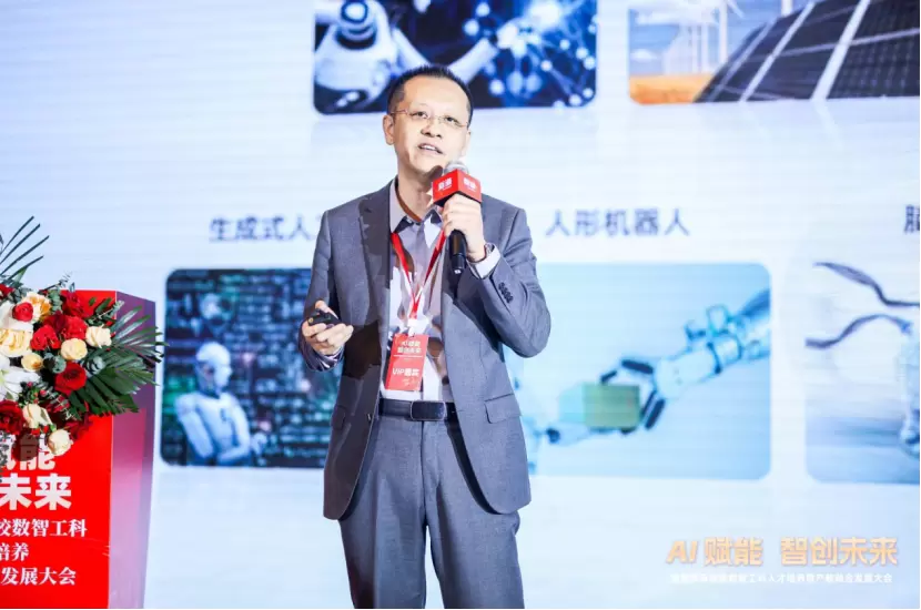 新道科技股份有限公司副总裁耿兆强以“产教筑基新工科 数智赋能向未来”为题作演讲。他表示,数智企业是中国企业新航向,人工智能时代的产业将在技术环境、产业环境、要素环境三个方面发生变化。当前,智改数转成为中国教育新常态,数智工科人才就是新质人才,需要硬科技、高复合、善创新。耿兆强介绍,新道科技基于用友丰富产业案例和用友精智工业互联网平台,运用科技构建产教融合,通过产业态势感知平台,产业链认知平台,企业认知实践平台,真实行业、千亿数据,工科专业创新平台,跨专业综合实践平台,能力训练平台,数智科研平台,智能教学中台,产教融合大脑与院校深化产教融合,构建高质量新工科教育体系。同时,新道科技积极推动以AI创变教学模式、使能产教融合,以数智产融基地为场域、重塑实体空间,并联合政行企校共建工科新生态。