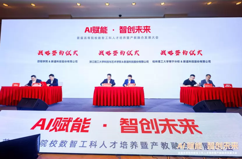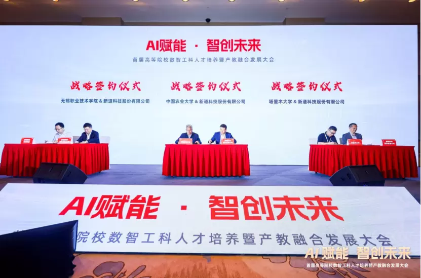 4月11日,首届高等院校数智工科人才培养暨产教融合发展大会在长沙举行。大会以“AI赋能 智创未来”为主题,来自全国各地的本科院校、职业院校、行业企业以及媒体等1000余位嘉宾共聚长沙,共探人工智能驱动下新工科教育数智化转型的创新实践,共享产教协同育人新成果,校企聚力构建数智工科教育新生态。会上,新道科技与中国农业大学、无锡职业技术学院、邵阳学院等多家院校正式开启战略合作。