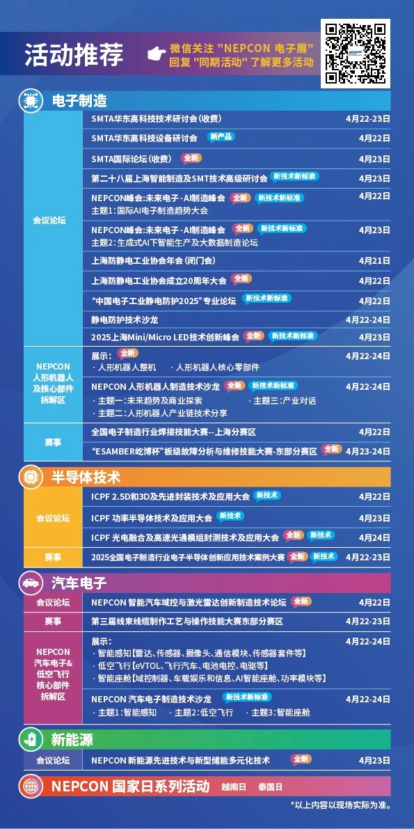 - 4月22-24日 NEPCON China上海世博展览馆邀您共探先进电子制造及沉浸式技术探秘场域