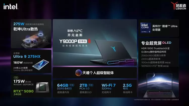 酷睿Ultra 9 275HX +RTX 5090,联想拯救者Y9000P至尊版豪华配置“稳赢”