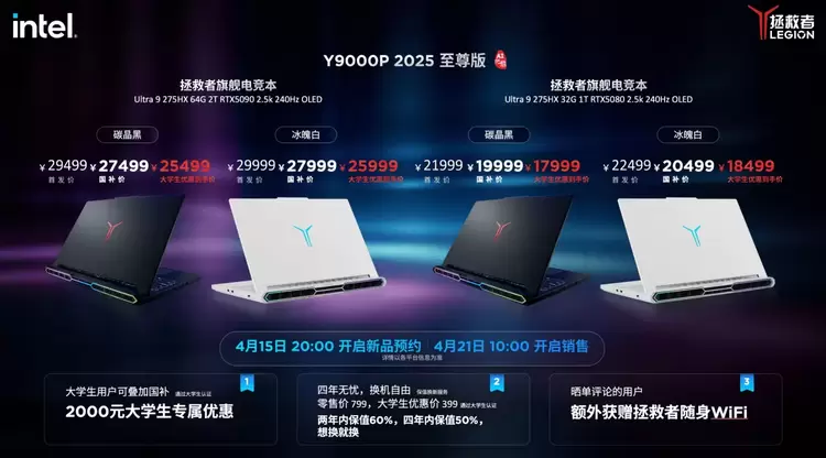 联想拯救者上新|Y9000P至尊版、刃7000K超能AI元启版4月15日开启预售