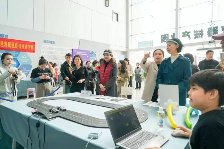 4月1日下午,南山区医疗器械产业园A座大厅内温情满满,BrainCo强脑科技与南山区妇幼保健院、南山区残疾人联合会联合举办的义诊及关爱打卡活动吸引了众多家庭参与。医学博士赵刚与儿童中医师杨润娜等专业医生现场提供免费义诊,测评项目有儿童发育筛查、孤独症专项评估及其他心理行为问题评估,为出现了发育问题早期症状的孩子提供干预建议。