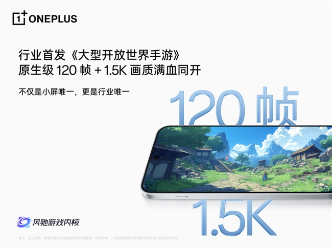 得益于一加与高通在六大领域的深度合作,一加 13T 在性能调度、游戏渲染、AI 功能、显示效果等场景进行了全方位技术优化。同时,在独家自研芯片级游戏技术「风驰游戏内核」加持下,一加 13T 带来游戏帧率、画质的双重跃升,不仅支持四大主流游戏无限满帧,更带来行业唯一某大型开放世界手游 120 帧与 1.5K 画质满血同开的游戏体验,让小屏手机同样拥有更流畅、更高帧的游戏体验。