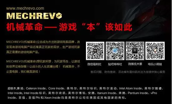 扫描二维码关注机械革命官方微信、微博、贴吧,了解更多游戏硬件前沿资讯。