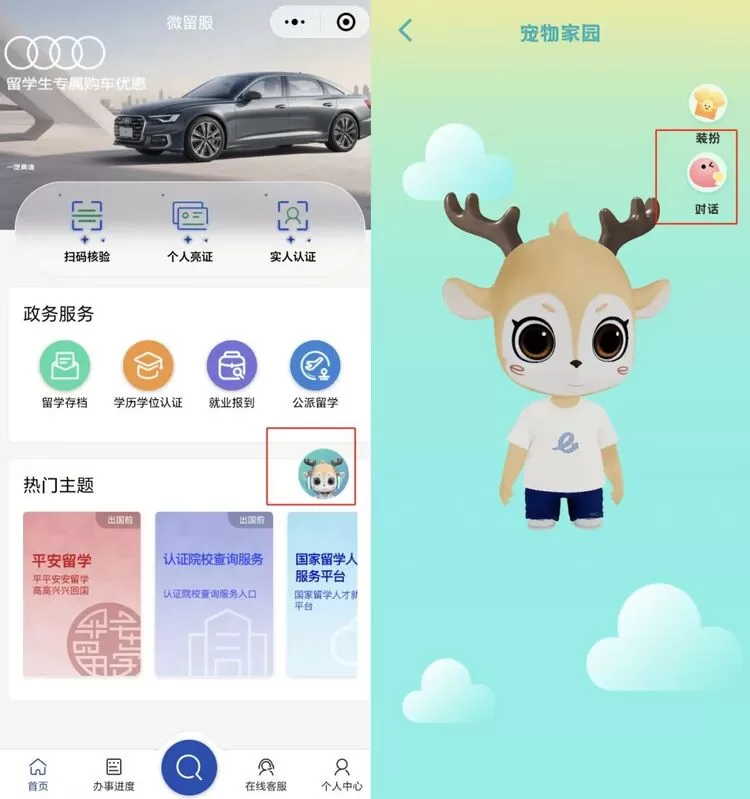 官方小程序—微留服、官方App—留学e网通App的“出国留学助手”入口