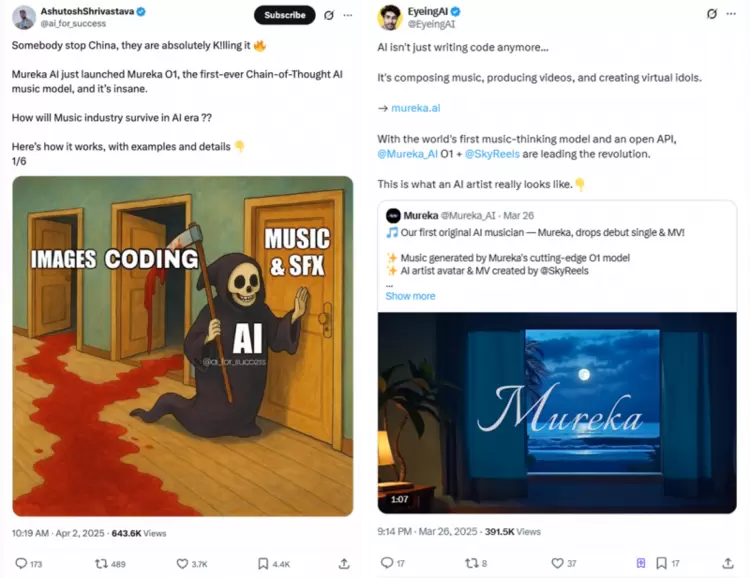 截至目前,超过100个国家地区的用户正在使用该平台进行音乐创作,同时在YouTube、X等社交媒体平台上,Mureka也收获了极高的人气。