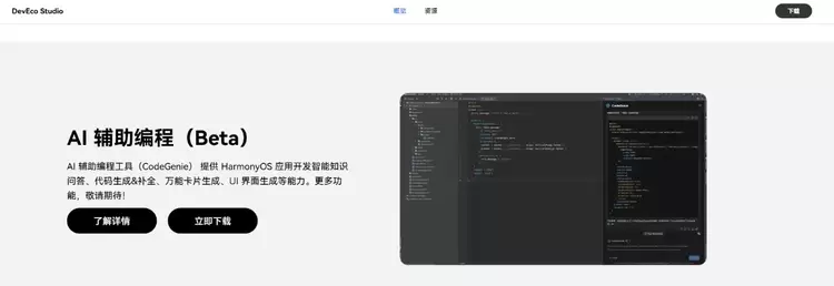 目前,CodeGenie新增能力已经上线,开发者可进入“HarmonyOS开发者官网”,点击“开发”——>“DevEco Studio”,可“立即下载”最新版AI辅助编程插件,进行安装使用。