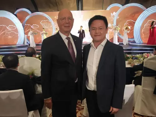 世界经济论坛创始人兼执行主席克劳斯·施瓦布与黄鼎隆博士合影