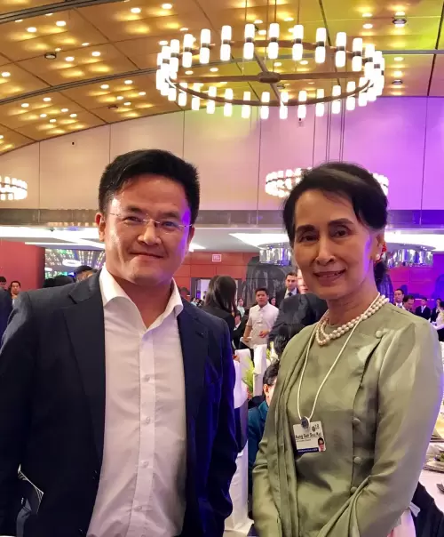 缅甸国务资政、诺贝尔和平奖得主昂山素季与黄鼎隆博士合影